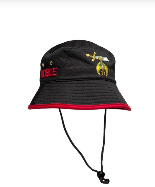 BOONIE BUCKET HAT WITH SHRINER LOGO AND WORD NOBLE FULLY EMBROIDERED. HAT HAS A REMOVABLE STRAP.. ONE SIZE FITS MOST.